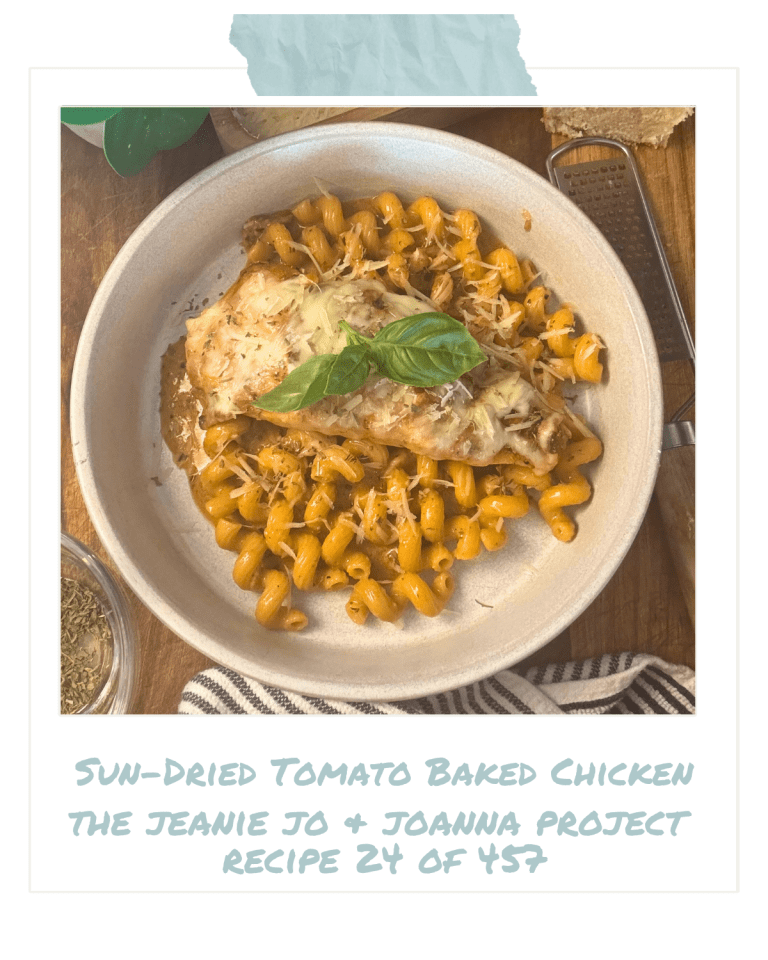 Inspired by Julie & Julia, I’m cooking my way through Magnolia Table Volumes 1, 2, and 3. I’m calling it The Jeanie Jo & Joanna Project. Recipe 24 of 457 is Sun-Dried Tomato Baked Chicken—and here’s how it turned out.