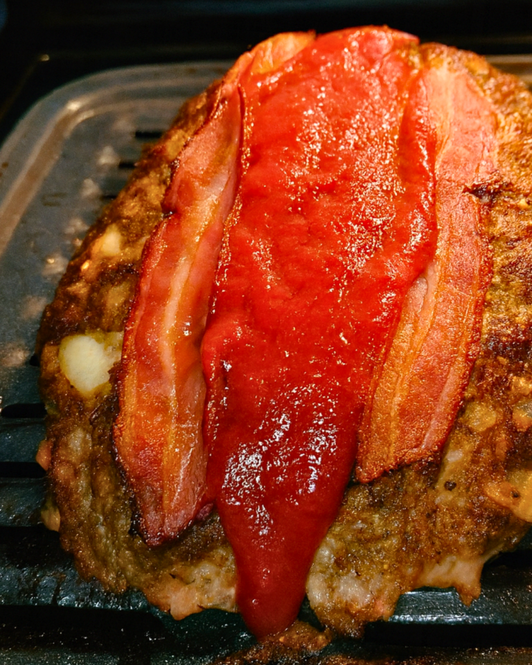 But let’s just say my first attempt didn’t go quite as planned. I noticed she used a broiler pan to let the fat drip off, which I thought was genius. Somewhere in my new-cook brain, I mixed that detail up with broiling itself. Instead of baking the meatloaf, I broiled it—proudly watching as the top turned a gorgeous brown—before realizing the inside was still raw. After rereading the recipe, I removed the bacon and top layer of meat, adjusted the temperature, and cooked it through. By the time it was done, the potatoes were lukewarm, the corn was soft, and my confidence had melted right along with the butter in the pan. But that night I learned one of the most valuable kitchen lessons I still carry with me today: read and understand the recipe before you start cooking.
